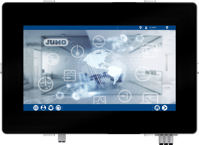 JUMO variTRON 500 touch is based on the JUMO JUPITER modular platform. The central processing unit, in combination with the proven input and output modules from JUMO, forms an overall system with integrated PLC (CODESYS V3.5) and enables visualization via touch panel.