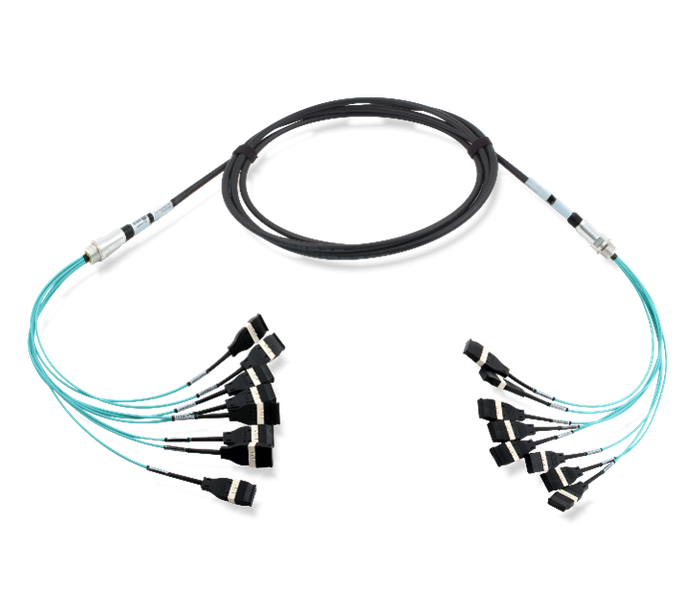 Trunk cables are used for structured backbone cabling with high fibre counts in data center environments. They enable fast and reliable installation in cable ducts and raised floors and are typically based on loose-tube cable designs to minimize mechanical load. Pre-assembled trunk cables with connectors on both ends simplify deployment in patch and splice boxes. A wide range of connector systems can be used, including MPO as well as ferrule-based solutions such as URM or SN with 8-fibre Uniboot, supporting attenuation budgets and future migrations.