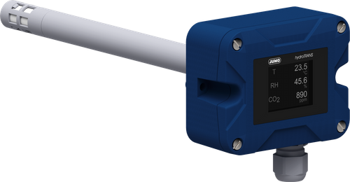 Humidity and temperature transmitter with optional CO2 module in duct version.