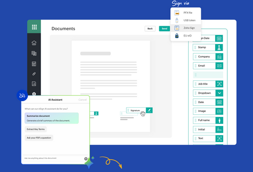 Zoho Sign is a complete digital signature solution for growing businesses around the world. With Zoho Sign, you can sign, send, and manage your business agreements from anywhere.